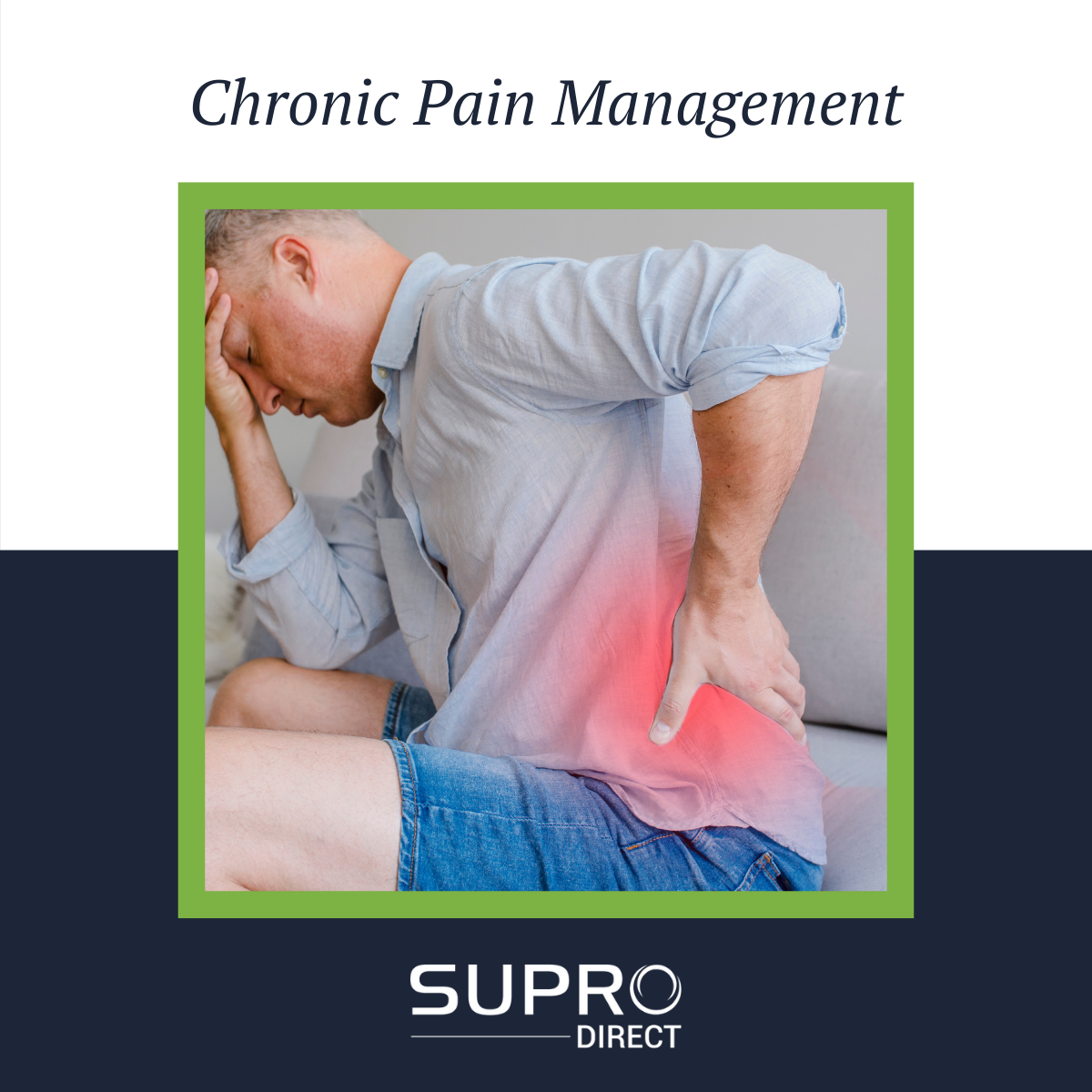 Don't let chronic pain hinder you ability to enjoy life! At Supro Direct, we offer a wide variety of chronic pain treatment options including laser therapy, platelet rich plasma (PRP) therapy, regenerative medicine, and pulse electromagnetic field (PEMF) therapy. Call our office today to schedule your appointment and manage your chronic pain symptoms!